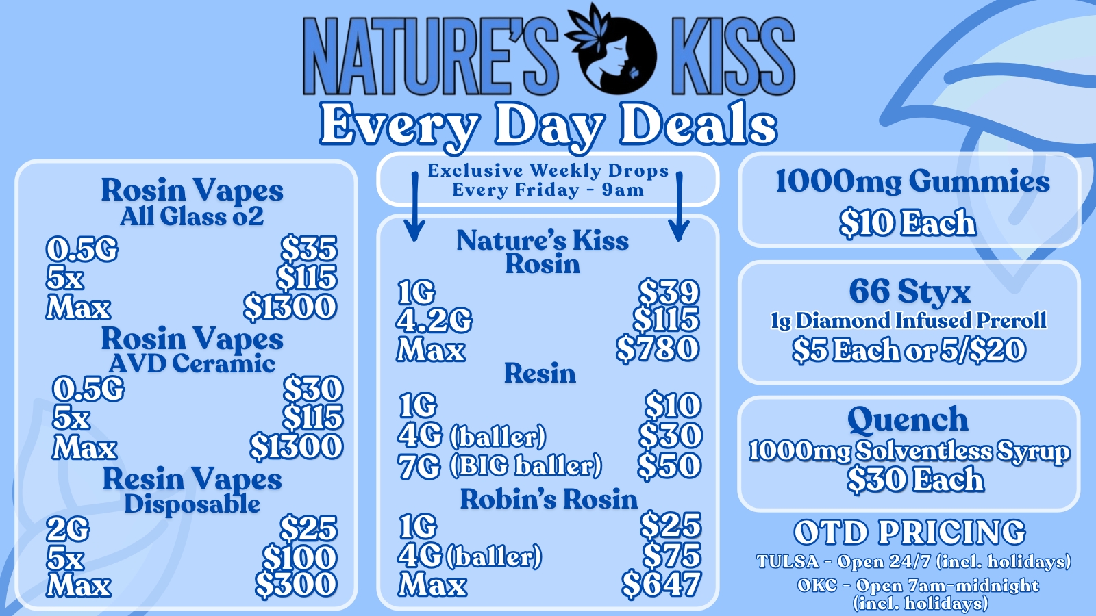 We know that everyone turns to medical cannabis for their own reasons: a mood, an ailment or just a good night's sleep. That’s why we offer seed to store products grown and manufactured to our high standards. At Nature's Kiss, there is no such thing as a dumb question! We are committed to providing our patients with a superior experience in an environment that is unrushed, safe and educational. Nature's Kiss is more than a marijuana dispensary—it's a way to heal better, feel better and live better.